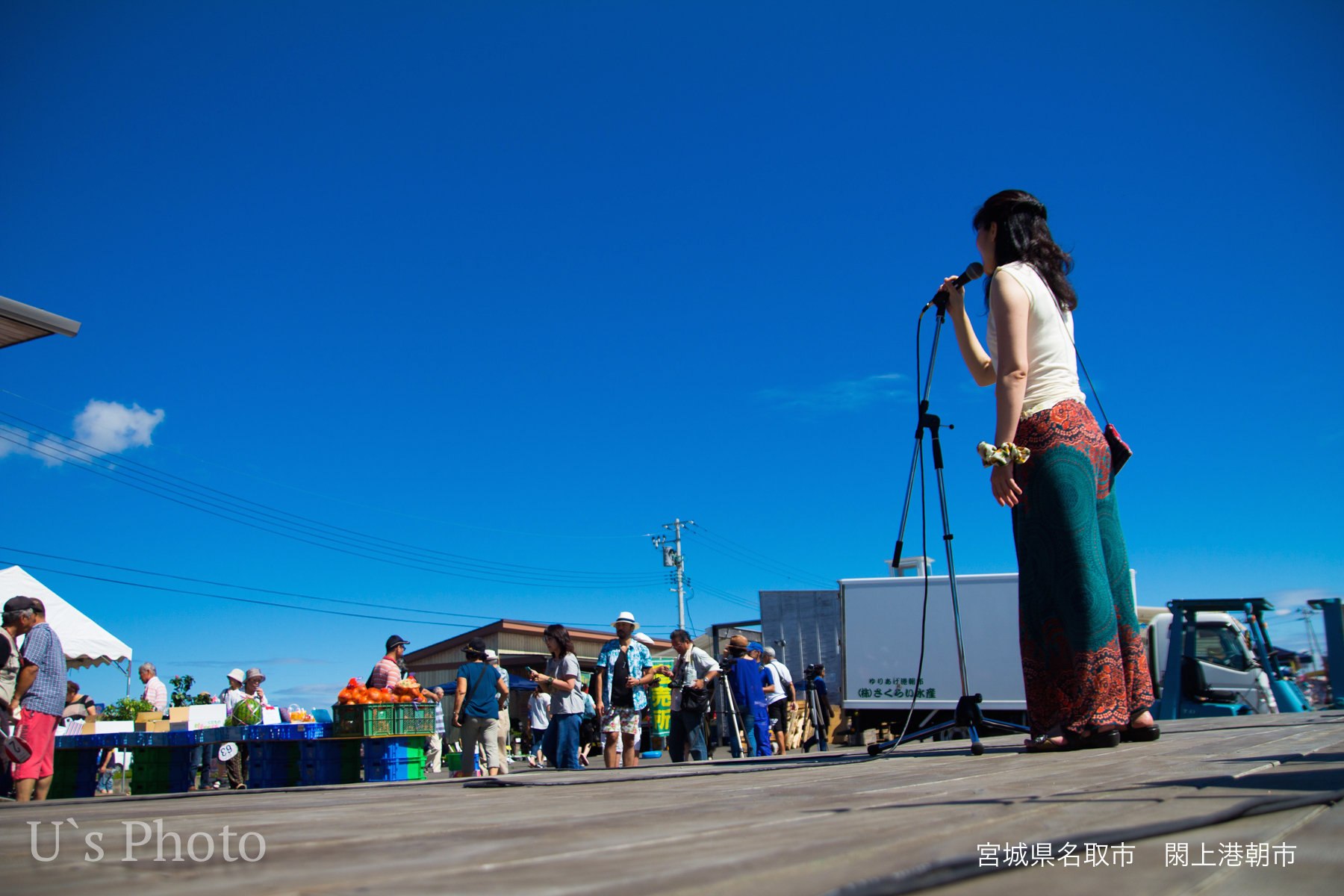 これもまた恒例になった閖上港「朝市」でのライブ。こちらも毎回、活気が凄いです!!